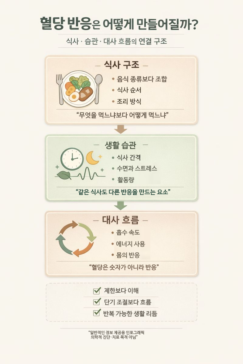 혈당 반응이 왜 달라지는지 ‘구조적으로 이해하는 것’을 목표로 합니다.처음 방문하신 분이라면