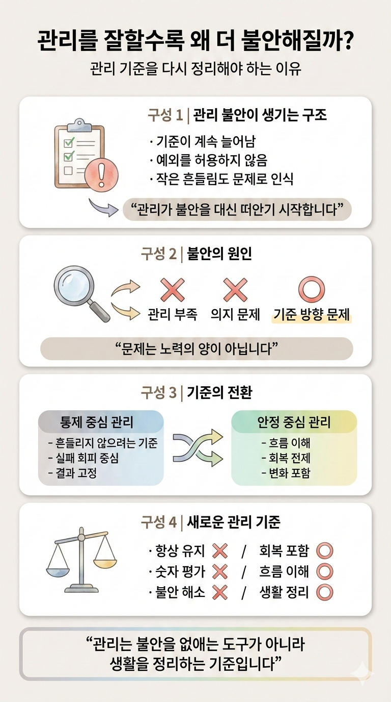 관리의 기준이 ‘안심’이 아니라 ‘통제’로 이동한다는 점입니다.