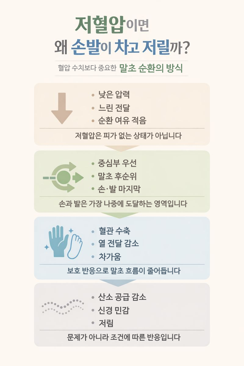 아래 대표글을 먼저 읽어보셔도 좋습니다.👉 [손발이 차고 저리고 붓는 이유|저혈압·말초순환·밤 증상 정리]