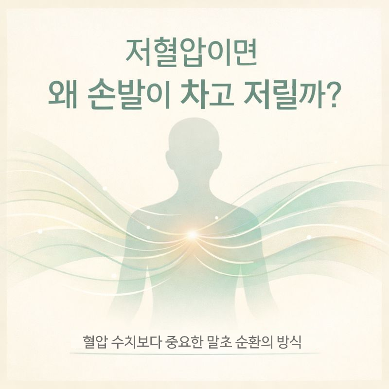 손발이 차고 저리고 붓는 이유저혈압·말초순환·밤 증상을 한 번에 이해하기손발이 항상 차갑게 느껴집니다.가만히 있는데도 손이 저린 날이 있고,저녁이 되면 종아리나 발목이 유독 무거워집
