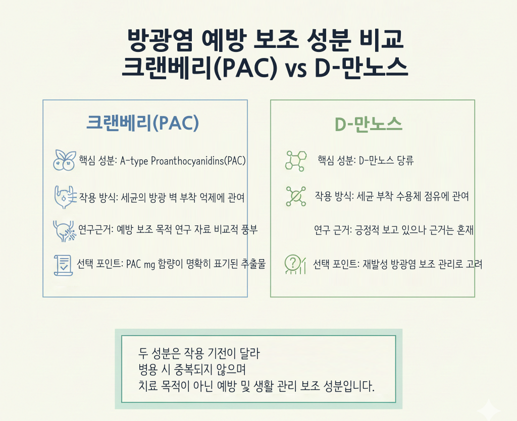👉 재발성 방광염 관리 시 보조적으로 고려되는 성분